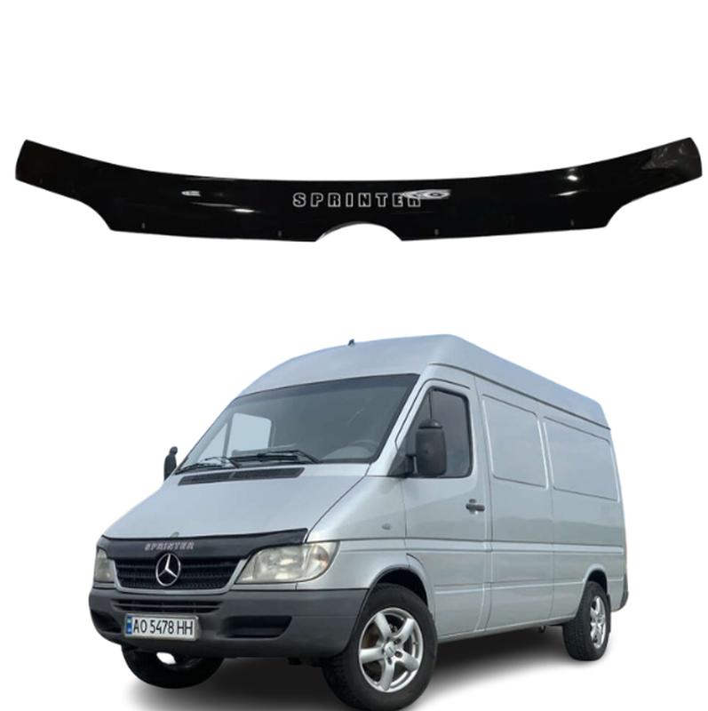 Дефлектор на капот Mercedes Sprinter I 2002-2006 после рестайлинга Мухобойка на капот Мерседес Спринтер Дефлектор капота представляет собой накладку из пластика в виде щитка и устанавливается на переднюю часть капота. Основной функцией этого аксессуара является защита автомобиля от повреждений камешками и другими мелкими предметами, вылетающими на большой скорости из-под колес впереди идущих автомобилей. Дефлектор капота представляет собой модельный аксессуар, который не только улучшает внешний вид автомобиля и придаёт шарм его экстерьеру, но и выполняет защитную функцию (он защищает лобовое стекло и капот от механических повреждений мелким дорожным мусором, насекомыми и т. д). - Это защитная накладка, которая по форме повторяет переднюю часть капота автомобиля. Ее основной функцией является защита капота и стекла автомобиля от механических повреждений, а именно от ударов мелких камней, веток песчинок и других предметов, которые часто встречаются на дороге. Также смотрите другие наши товары