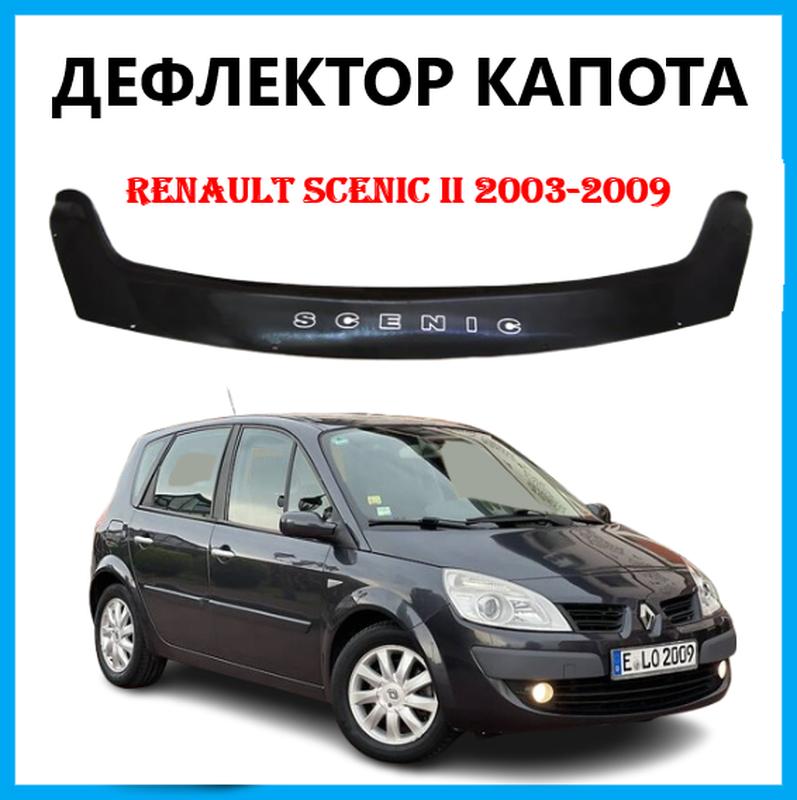 Дефлектор на капот Renault Scenic II 2003-2009 Мухобойка на капот Рено Сценик 2003-2009 Av-Tuning Дефлектор капота представляет собой накладку из пластика в виде щитка и устанавливается на переднюю часть капота. Основной функцией этого аксессуара является защита автомобиля от повреждений камешками и другими мелкими предметами, вылетающими на большой скорости из-под колес впереди идущих автомобилей. Дефлектор капота представляет собой модельный аксессуар, который не только улучшает внешний вид автомобиля и придаёт шарм его экстерьеру, но и выполняет защитную функцию (он защищает лобовое стекло и капот от механических повреждений мелким дорожным мусором, насекомыми и т. д). - Это защитная накладка, которая по форме повторяет переднюю часть капота автомобиля. Ее основной функцией является защита капота и стекла автомобиля от механических повреждений, а именно от ударов мелких камней, веток песчинок и других предметов, которые часто встречаются на дороге. Также смотрите другие наши товары