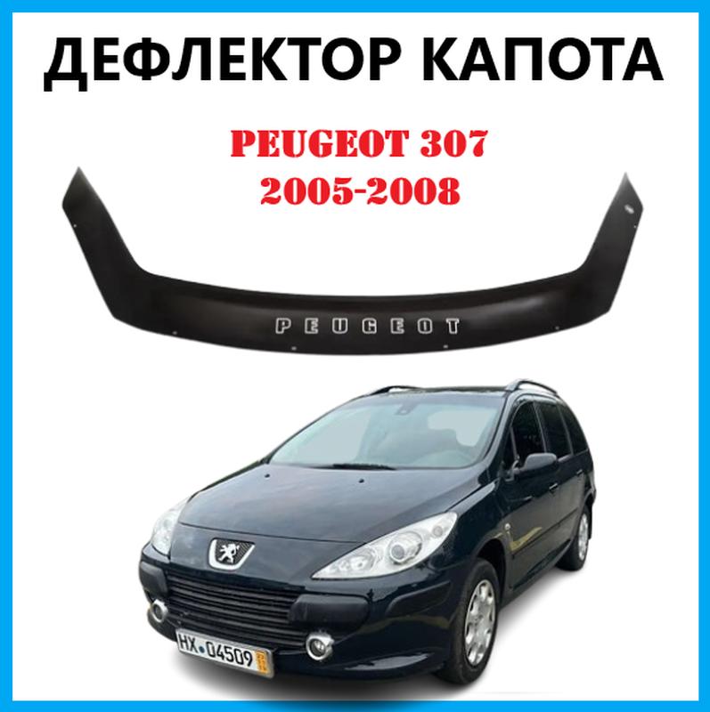 Дефлектор на капот Peugeot 307 2005-2008 Мухобойка на капот Пежо 307 2005-2008 Дефлектор капота представляет собой накладку из пластика в виде щитка и устанавливается на переднюю часть капота. Основной функцией этого аксессуара является защита автомобиля от повреждений камешками и другими мелкими предметами, вылетающими на большой скорости из-под колес впереди идущих автомобилей. Дефлектор капота представляет собой модельный аксессуар, который не только улучшает внешний вид автомобиля и придаёт шарм его экстерьеру, но и выполняет защитную функцию (он защищает лобовое стекло и капот от механических повреждений мелким дорожным мусором, насекомыми и т. д). - Это защитная накладка, которая по форме повторяет переднюю часть капота автомобиля. Ее основной функцией является защита капота и стекла автомобиля от механических повреждений, а именно от ударов мелких камней, веток песчинок и других предметов, которые часто встречаются на дороге. Также смотрите другие наши товары