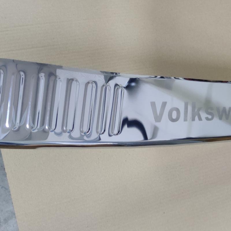 Накладка на задний бампер для Volkswagen transporter Т5 (2010+) с загибом. длина накладки 125 см Защитная накладка на задний бампер станет отличным вашим помощником при использовании багажника Volkswagen Т5/ Т6 . Во время погрузки или выгрузки груза Вам не надо больше переживать за сохранность заднего бампера, об этом позаботится хром накладка на заднем бампере. Кроме этого Ваш микроавтобус Volkswagen Т5/ Т6 приобретет более современный и стильный вид. Способ крепления - скотч 3М, который уже нанесен на накладку.