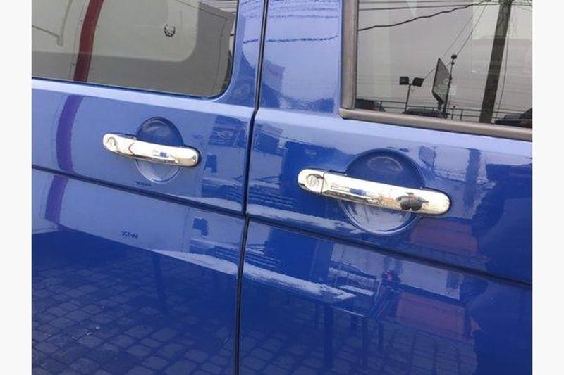 Накладки на ручки Volkswagen Т5 (нерж.) Хром накладки Хром накладки на ручки дверей Volkswagen transporter/ multivan/ caravelle T5 призваны украсить стильный дизайн немецкого микроавтобуса. Накладки просто наклеиваются на штатные ручки с помощью надежного скотча 3М (или клея - герметика) и Вы получаете совершенно новый внешний вид своего буса Volkswagen transporter/ multivan/ caravelle T5. Вместе с тем, если на заводских ручках имеются потертости или другие дефекты, Вы с легкостью избавитесь от этих неприятных явлений с помощью накладок на ручки. Данные накладки подходит к моделям Volkswagen transporter/ multivan/ caravelle T5, T6, а также к Volkswagen Caddy всех годов выпуска. Накладки на дверные ручки отлично смотрятся с накладками под ручки («мыльницы»), которые Вы также можете купить в нашем интернет - магазине по самой низкой цене в Украине. Материал изделия - нержавеющая сталь. Производство - Турция.