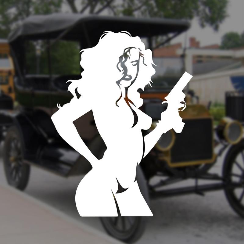 Наклейка на авто/мото на стекло/кузов "девушка с пистолетом" белый цвет