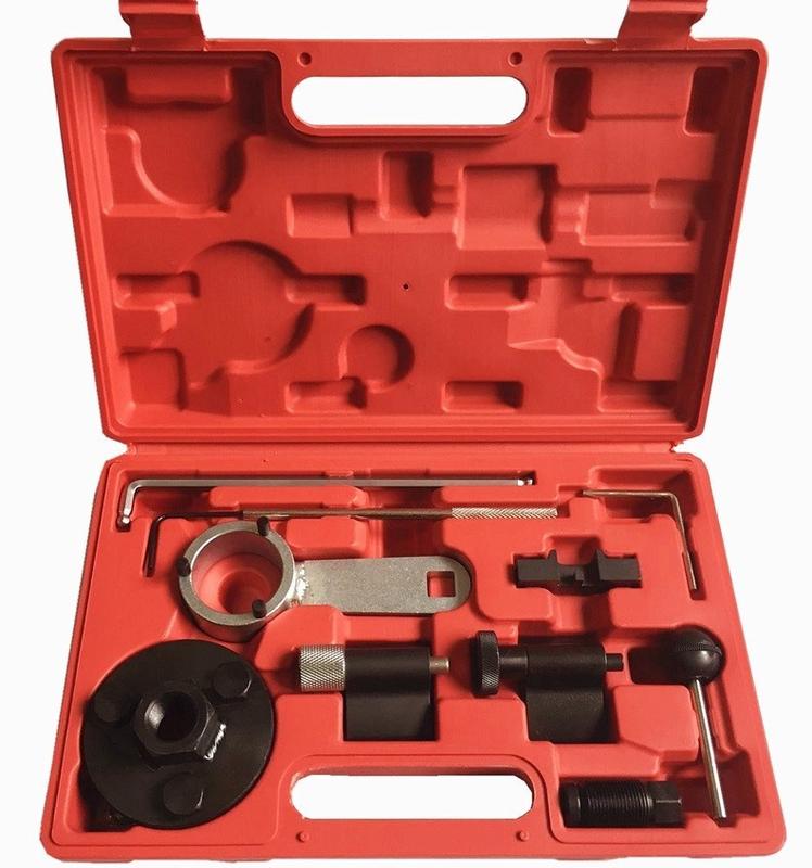 Фиксаторы валов ГРМ VAG 1.6/2.0 TDI Rewolt (T4434VAG) - это набор инструментов для применения на авто VAG с двигателями 1,6 и 2,0 TDI. Специально разработан квалифицированными специалистами для блокировки распределительного вала и коленчатого вала во время ремонта ремня привода газораспределительного механизма. Фольксваген / VW Применение: - Golf 5, 6, 6 Plus, Eos, Polo 5, Jetta 5 и 6, Scirocco 3, Beetle 2, Caddy 2, Passat B6, B7 и CC Touran 2, Tiguan, Sharan 2, Transporter T5, Amarock - AUDI - A1, A3 (8P), A4 (B8), A5, A6 (C6 и C7), TT (8J), Q3, Q5 - SKODA - Fabia II, Roomster, практика, Octavia II, Suberb II, Yeti - LEON - Ibiza (6J), Leon III, Exeo, Altea, Alhambra II Коды двигателей: - 1,6 TDI начиная с 2009: CAYB, CAYC. - 2,0 TDI начиная с 2007: CAAA, CAAB, CAAC, CBAB, CBBB, CBAA, CFFB, CAGA, CAHA, CAGB, CAHB, CAGC, CCHA, CAVA, CBDA, CBDD, CBAC, CBDC. ОЕМ коды: T20102, T10100, T10264, T10265, T40098, T10051, T10255. Комплектация: - Clap для фиксации ремня - T 10264 - Pin - T 10265 - Звездочка распределительного вала - T 10051 - Натяжитель ремня - PIN-T 40098 - Вал FIX - T 10255 - Съемник звездочки распределительного вала - T 10052 - Блокировка распределительного вала 1.6 - T 10050 - Блокировка распределительного вала 2.0 - T 10100 - Инжекторный насос Pin - T 20102/3359