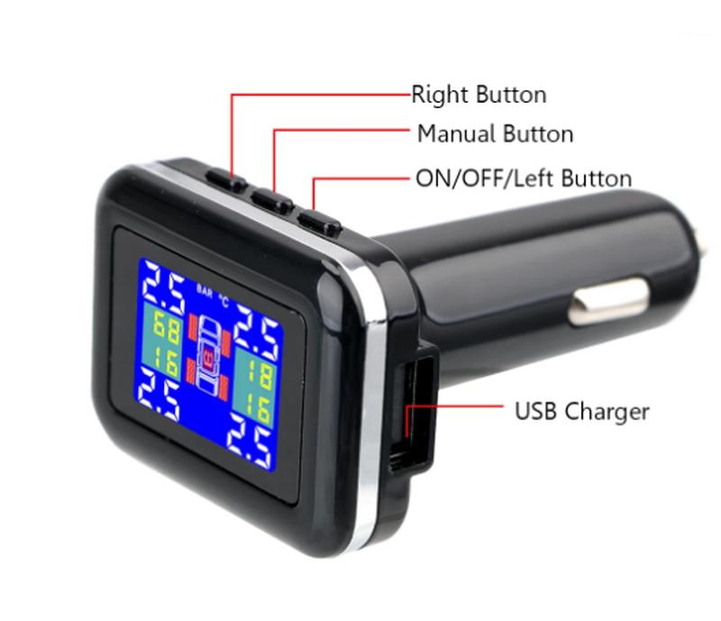 Особенности: Новинка и высокое качество Мониторинг давления и температуры в шинах в реальном времени Предупреждение об утечке шин и температурный баланс ЖК-дисплей, простой пользовательский интерфейс Дисплей может быть непосредственно подключен к прикуривателю Сигнал бипера и отображение значения сигнала тревоги Может поддерживать четыре шины, положение шин может меняться Визуальное и звуковое предупреждение о ненормальном давлении и температуре Посылка включает в себя: 1 x система контроля давления в шинах 4 внешних датчика 1 комплект аксессуаров (инструмент)