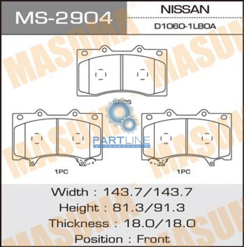 Колодки дисковые masuma patrol/ y62 front (1/6), ms2904