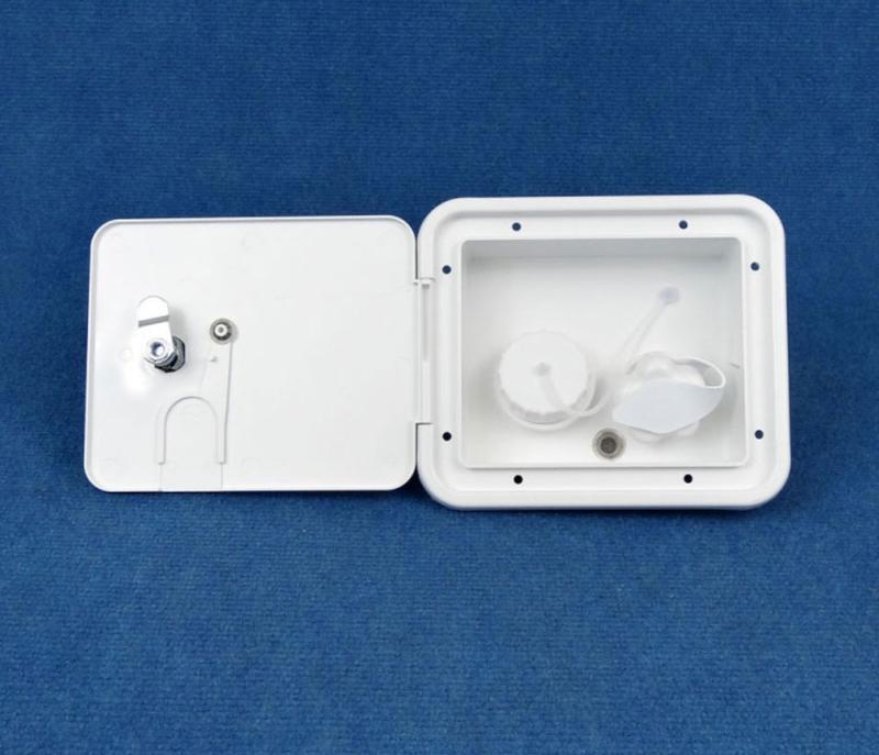 Новий має потертості ззовні на кришці Подвійний наповнювач води, що замикається - шланг плюс мережа США f-3/4'' NPT. особливості Впускний патрубок для води під тиском – 3/4 дюйма USA FEMALE-NPT. Вихід тиску на задній панелі MALE-BSP-1/2 дюйма. Наливна горловина бака входить до 28-мм зубця ззаду. (підійде до чорного шланга з підігрівом 25 мм ID-10715) Також на задній панелі є з’єднання BARB-1/2 дюйма для вентиляційного шланга. Поставляється з одним ключем. Гарантія 1 рік. Технічні характеристики Модель: 800-01081 Торгова марка: Jayco Розмір отвору: 120 мм х 150 мм. Зовнішній фланець: 165 мм x 195 мм. Вага в упаковці: 350 грам. Розміри транспортування: 23 см x 17 см x 11 см. Наші коментарі Вхідний отвір для тиску в мережі має отвір діаметром приблизно 2,5 мм у задній частині фітинга, який діє як редуктор тиску. 71