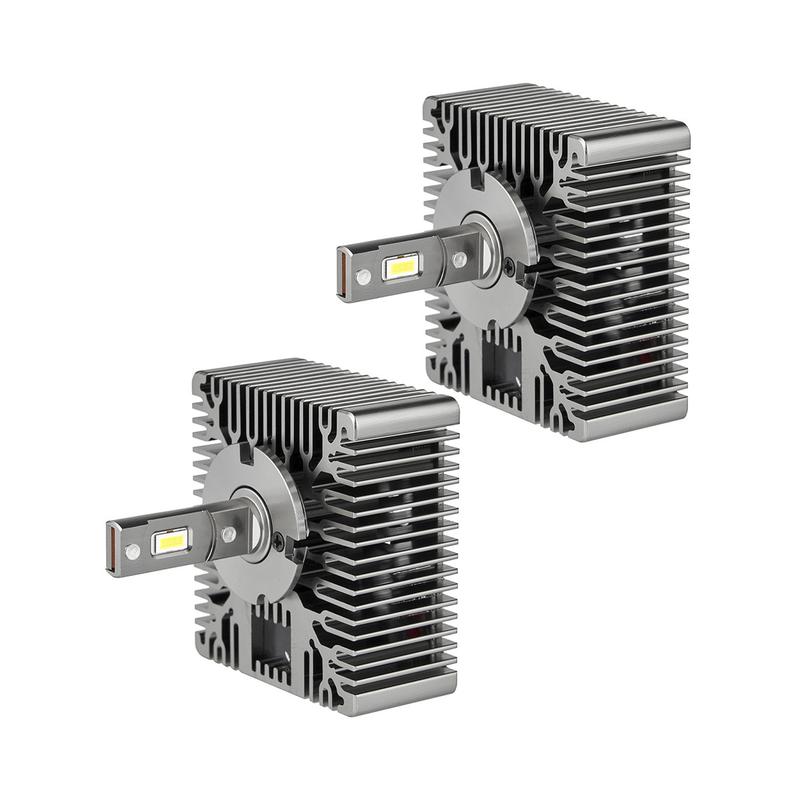 Світлодіодні лампи стануть чудовою альтернативою галогенним лампам і ксенону. Передбачені для встановлення в рефлекторну фару, перевершують ксенон за технічними характеристиками, але в той же час економічніший термін експлуатації становить не менше 30 000 годин, не вимагають блоку розпалювання. Всі стандарти дотримані для встановлення в посадкове місце D8 фари, добре виражена світлотіньова межа, лампи не зліплять зустрічний транспорт. Переваги світлодіодних ламп D8 перед галогенними та ксеноновими лампами: Яскравість світла нарівні з ксеноном, але конструкція набагато надійніша і простіша. Немає пожежонебезпечних елементів, як блоки розпалювання ксенонових ламп. Немає ефекту засліплення зустрічного транспорту: світло спрямоване під кутом, порівнюючи з галогенними або ксеноновими лампами, світло від яких спрямоване на всі боки. Простота та універсальність конструкції світлодіодної лампи, висока стійкість до вібрацій. Невелике споживання енергії. Контролер, що забезпечує захист від стрибків напруги в бортовій мережі. Термін експлуатації світлодіодів становить до 50 000 годин: навіть за активної експлуатації лампи служитимуть тривалий час. Технічні характеристики: Тип цоколя: D8S; Світловий потік: 12000 Lm; Напруга живлення: 9-16 В; Колірна температура: 6000K; Тип LED елемента - CREE Technology; Потужність - 90W±5%. Чому потрібно купити саме ці? Інноваційна система охолодження Double Heat Pipe Vacuum Technology, електронні системи контролю температури чіпа та використання високошвидкісного вентилятора дозволили досягти максимальної світловидності діодних модулів G-XP High Power Bright Led Chip. Розташування світлодіодів повністю збігається з розташуванням ниток розжарення звичайних галогенних ламп. Встановлення лампи виконується просто і не потребує допомоги установника. LED- лампи готові до роботи одразу, ніякого додаткового обладнання не потрібно. Світловий потік перевищує світловий потік ксенонового світла. Кожна лампа проходить відділ технічного контролю, гарантуючи стабільну роботу в усьому рядку експлуатації лампи.