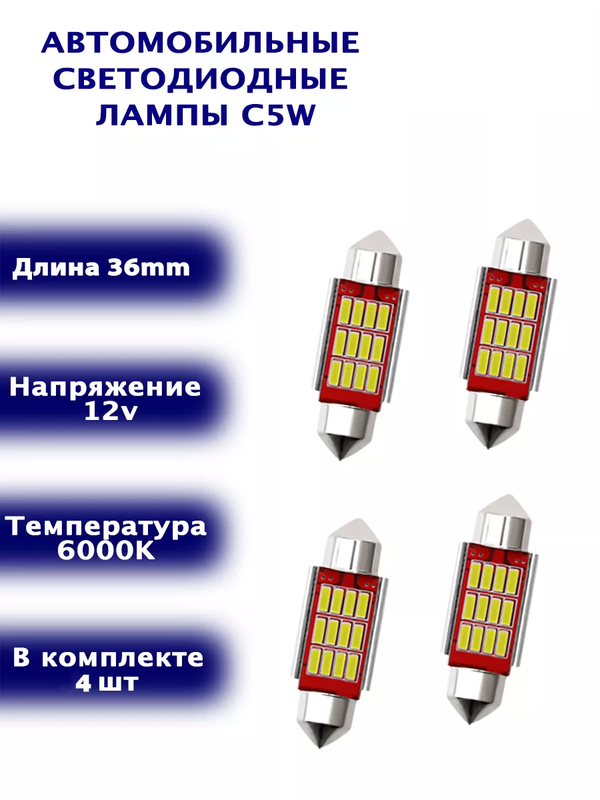 Комплект светодиодных ламп 36 мм, 4 шт. (c5w/c10w, драйвер, обманка)