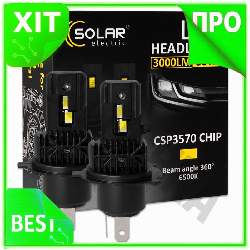 Ve автолампа solar led h4 new version 12/24v 30w 3000lm 6500k для автомобилей яркие фары с...