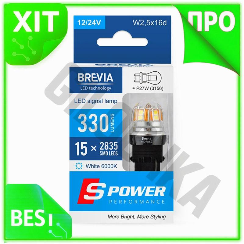 Ve led автолампа brevia s-power new version p27w 330lm 15x2835smd 12/24v для автомобилей б...