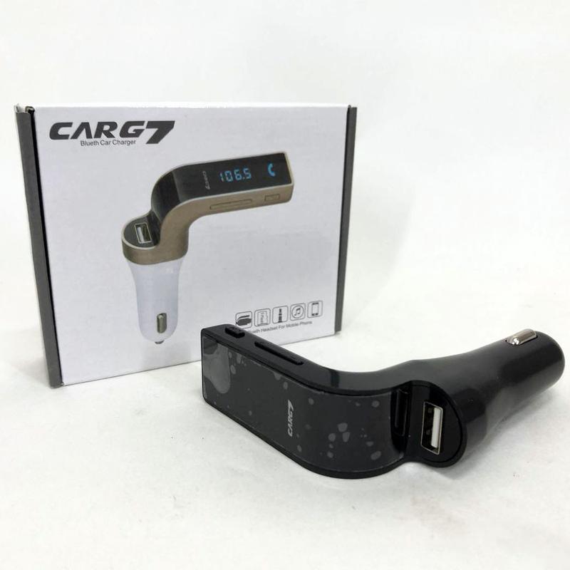 FM модулятор CarG7 4-в-1 представляет собой универсальное автомобильное зарядное устройство с USB разъемом, Bluetooth соединением, MP3-плеером, слотом для microSD карты. У данного устройства есть встроенный декодер, который может передавать музыкальные файлы в стерео-систему автомобиля, и может переключаться на входящие вызовы по громкой связи, если ваш мобильный телефон снабжен соединением Bluetooth. После завершения вызова, FM модулятор снова переключится на воспроизведение музыки. Вы можете наслаждаться музыкой, заряжать смартфон и отвечать на вызовы одновременно, не используя рук и не отвлекаясь от управления автомобилем. Особенности модулятора CarG7 Bluetooth: - Поддержка FM-передатчика - Со светодиодным экраном - Поддержка воспроизведения музыки с помощью USB-порта - Поддержка формата музыки WMA MP3 - Подавление технологии эха и шума - Aitumatic функция силы - Выход USB: 5V / 2.5A