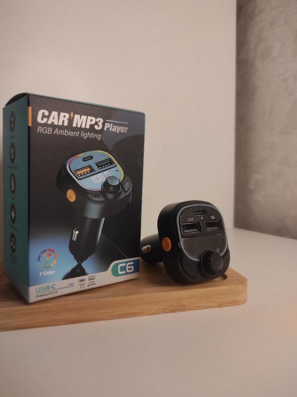 Автомобильный FM модулятор Беспроводной автомобильный комплект MP3-плеер FM-передатчик, многофункциональное автомобильное зарядное устройство. Bluetooth 5.3 два порта USB и быстрая зарядка Type-C 3.1A. материал:ABS.