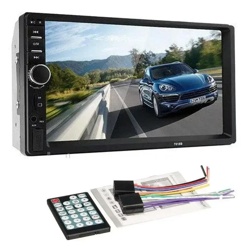 Автомагнитола 7012 B 2Din с Bluetoth и сенсорной панелью. Это идеальный бюджетный вариант с сенсорным экраном и разрешением 800 *480. Также можно подключать медиа файлы через AUX вход. Воспроизводит все известные форматы видео и . В комплекте идет пульт. Магнитола 2 DIN 7012 B. Дисплей сенсорный 7″, Bluetooth, Видео Full HD, Фото, Линейный вход AUX, Карта памяти Micro SD, Флеш накопитель USB, Изменяемая подсветка, Хранитель экрана/Ночной режим. Пульт ДУ Технические характеристики: -7″-дюймовый цифровой TFT емкостный сенсорный экран -TF слот для карты, с USB 2.0 порт – 3D меню -1080 P видео формат -Поддержка аудио формат воспроизведение mp3/wma/wav/mkv/flac/ogg/ape -Поддержка воспроизведение видео в формате: rm/rmvb/dvd (vob)/vcd dat)/mp1/mp2/divx/xvid/mp4/h263/h264/flv/3gp/swf/avi/asf/mjpeg -Усилитель mosfet: 60 Вт X 4max Выходная мощность -Fm диапазон: 87.5 мГц-108.00 мГц (европа) -С дистанционным управлением -Запоминание режима воспроизведения- фм/ tf/usb режим -Функция часов Функция отключения звука -Bluetooth функции -Bass и treble, L & R канал стабилизатор -Aux функция Комплектация: 2DIN автомагнитола Провода для подключения Пульт ДУ Инструкция