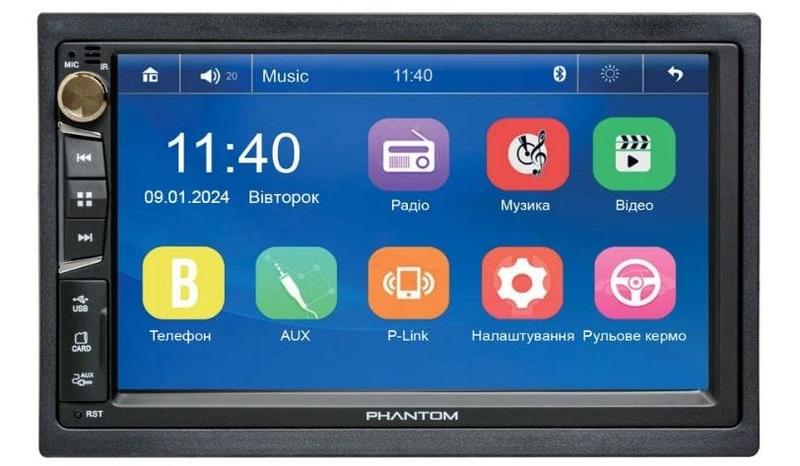 Кратко о Phantom DVX-731: Монтажный размер: 2 DIN OC: Windows Тип: USB (бездисковые) Bluetooth: Есть GPS: Нет Выходная мощность 4 х 50 Вт Размер экрана 7'' Основные характеристики: PHANTOM DVX-731 – это универсальный 7-дюймовый мультимедийный центр 2 DIN под управлением современной операционной системы WinCE - Емкостный дисплей 7 дюймов с разрешением 1024х600. - Мультиподсветки кнопок на передней панели устройства. - Радио тюнер: память на 18 станций FM. - Встроенный усилитель мощности: TDA 7388 4 х 50 Вт. - Phone Link: поддержка смартфонов на ОС Android и iOS. - Bluetooth и громкая связь. Благодаря наличию в PHANTOM DVX-731 встроенного модуля Bluetooth, пользователи становятся доступны следующие возможности: принимать и совершать звонки из мультимедийного центра, телефонная книга с поддержкой кириллицы, список входящих и исходящих звонков, прослушивание музыки с телефона. - Музыкальный и проигрыватель видео. - Аудио-видео интерфейсы. Наличие различных аудио-видео входов и выходов позволит расширить мультимедийный функционал центра PHANTOM DVX -731. Интерфейсы: - Вход для камеры заднего вида - Видео вход - Аудио вход AUX - Выход на наружный усилитель звука FR, FL. - USB порт и слот micro SD (поддержка носителей до 32Гб) - 2 Видео выходы для просмотра видео на внешнем мониторе - Вход для внешнего микрофона Технические характеристики - Экран: 7 дюймов, емкостный мультисенсорный экран. - Разрешение экрана: 1024х600. - Подсветка кнопок на передней панели: мультиподсветка - Процессор: С200. - Операционная система WinCE. - Радио тюнер: высокочувствительное цифровое радио, память на 18 FM станций. - Встроенный усилитель мощности: TDA 7388, мощность 4×50 Вт макс./4 Ом. - Эквалайзер: настройка НЧ/ВЧ/Тонкомпенсации. - Громкая связь Bluetooth: Есть, поддерживается телефонная книга и медиапротокол A2DP. Возможен поиск контактов в телефонной книге с помощью кириллицы. - Функция PhoneLink: поддержка смартфонов на ОС Android и iOS. - Кнопки на руле: поддерживаются резистивные кнопки на руле автомобиля, есть возможность программирования. - Внешние накопители: поддержка USB Flash до 32 Гб, micro SD Сard до 32 Гб (формат FAT, FAT 32) - Поддержка внешнего усилителя звука: 2 канала ( RCA Female, передний левый и правый). - Видео входы: 1 камера заднего вида ( RCA Female), 1 AV in вход (RCA Female). - Видео выходы: 2 Video out (RCA Female). - Аудио вход AUX in mini-jack 3.5 мм. - USB и SD: 1 x USB порт, 1 х SD слот. - Логотип марки автомобиля или собственный логотип при включении. - Габаритные размеры устройства: 178 х 102 х 65 (ШxВxГ, мм). Глубина устройства указана без учета выступающих элементов на задней части устройства. Основные функции РАЗВЛЕЧЕНИЯ В ДОРОГЕ - FM-радио с памятью на 18 станций. - Прослушивание музыки, просмотр видео и фотографий с USB накопителей и micro-SD карт памяти. - Воспроизведение музыки с мобильного телефона, подключенного через Bluetooth. - Видеовыходы на два дополнительных монитора (в подголовнике или потолочном). - Подключение смартфона к устройству с помощью PhoneLink .* - *Соединение PHANTOM DVX-731 и смартфона на OS Android или iOS зависит от многих факторов. - Перед покупкой этого мультимедийного центра проверьте работу вашего смартфона и функции PhoneLink . КОМФОРТ И БЕЗОПАСНОСТЬ - Общение по мобильному телефону с помощью встроенного Bluetooth. - Телефонная книга кириллицей. - Дополнительное удобство парковки и маневра автомобиля обеспечивает установку камеры заднего и фронтального обзора (камеры приобретаются отдельно). - Возможность подключения универсального видеопарктроника с 