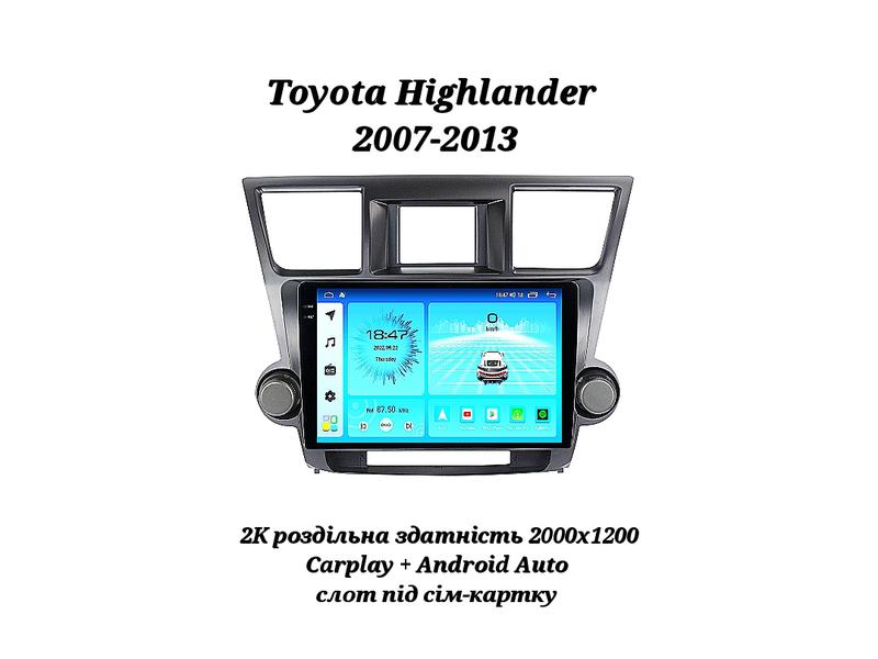 Магнитола 2k android toyota highlander 2007-2013, 4/32, 8 ядер, carplay, слот под сим-карт...