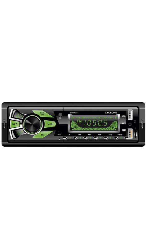 Кратко о Сyclone MP-1027 : Монтажный размер: 1 DIN Тип: USB (бездисковые) Панель: Несъёмная Bluetooth: Есть Подсветка кнопок: Изменяемая Выходная мощность 4Х45 Вт Описание товара 1 Din Магнитола с FM тюнером. Поддержка управления через мобильное приложение EwayLink (Android/IOS), переключение между источниками сигнала, настройка звуковых параметров и т.д. - MP3 проигрыватель с FM тюнером; - Фиксированная передняя панель; - Большой информативный дисплей; - Изменяемая подсветка кнопок ; - Блютуз (с поддержкой A2DP); - Встроенный микрофон; - Управление магнитолой через мобильное приложение по Блютуз; - Банк памяти на 18 станций FM; - Автоматическое занесение наиболее мощных станций в память; - Эквалайзер 3-пред.установки; - Поддержка аудио форматов MP3, WAW, FLAC; - Чтение ID3 TAG; - Поиск по папкам; - Фронтальный интерфейс USB - 2 шт.( 1 USB используется для зарядки мобильный устройств); - Интерфейс карт памяти microSD; - Выходная мощность 4 х 45 Вт (радиатор); - Режим приглушения звука (MUTE); - Линейный mini-jack стереовход (AUX) на лицевой панели; - Тыловой линейный аудиовыход (4 RCA); - Цифровые часы; - Стандартный ISO разъем; - Монтажный размер 1 Din; Гарантия 12 месяцев Функциональные возможности - Монтажный размер : 1 DIN - Тип : USB (Бездисковые) - Подсветка кнопок : RGB - Съемная передняя панель : Нет - Тип дисплея : Текстово-символьный - USB-разъем : Фронтальный - Мощность усилителя : 4х45Вт - Управление с кнопок руля : Нет - Сенсорное управление : Нет - Поддержка аудио-форматов : MP3, WMA, FLAC - Пульт ДУ : Да - Оснащение : USB, USB- зарядка, microSD, APP Control - Поддержка навигации : Нет - Дополнительные входы/выходы : Аудиовыход (4 канала) RCA - Поддержка Bluetooth : Встроенный модуль - Напряжение бортовой цепи : 12В Комплектация - Магнитола CYCLONE MP-1027 - ISO разъём - Пульт ДУ - Инструкция - Индивидуальная упаковка