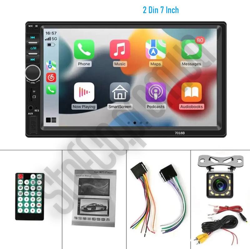 Автомагнитола 7018 2 DIN с проводным Carplay Android Auto . IP-дисплей, USB, TF, FM-передатчик. Характеристики: - Операционная система: Android - Ширина полосы FM радиорезонанса : 87,5-108,0 МГц - Радио тюнер: Apple CarPlay - Проводной Apple Carplay (только порт USB на передней панели) - Проводной Android Auto (только порт USB на передней панели) - Bluetooth A2DP, поддержка громкой святи - Мультимедийные интерфейсы : USB-порт, слот Aux-in - Поддержка камеры заднего вида - Поддержка управления рулевым колесом - Выбор языка меню - 1 порт USB (один для зарядки) - Поддержка входа для внешнего мікрофона - Размер магнитолы : 180мм*105мм*60мм (2DIN) - Вес товара : 0,78 кг - Материала : металл и пластик - Разрешение экрана : 1024*800 - Размер экрана : 7 дюймов - Вилка питания : 50 Вт * 4 - Напряжение : 12В Комплектация: - Автомагнитола 7018 2din - 1шт - Камера заднего вида - 1шт на выбор врезная или накладная (опционально) - Пульт - 1шт - Пульт на руль - 1шт (опционально) - Провода для подключения магнитофона - 2шт - Инструкция - 1шт - Заводская коробка - 1шт