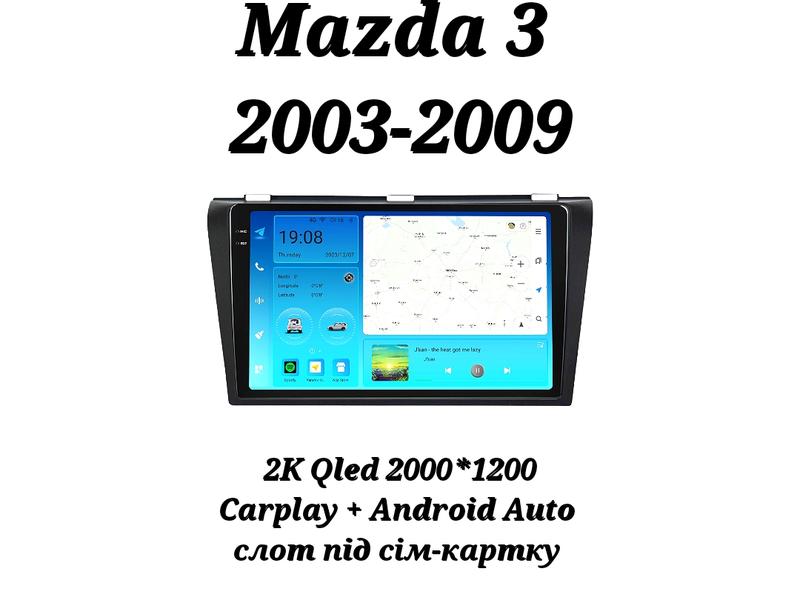 Магнитола 2k android mazda 3 2003-2009, 4/64, 8 ядер, carplay, слот под сим-карту + рамка!