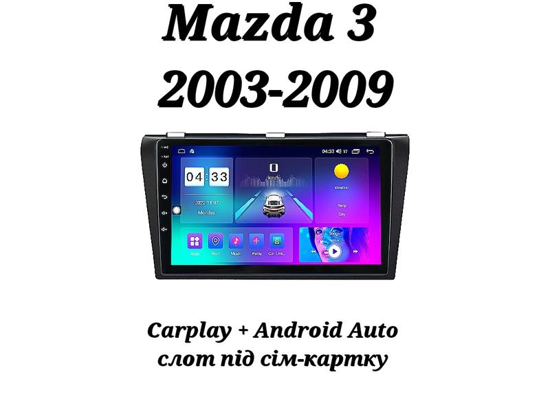 Магнитола android mazda 3 2003-2009, 2/32, 8 ядер, carplay, слот под сим-карту + рамка!