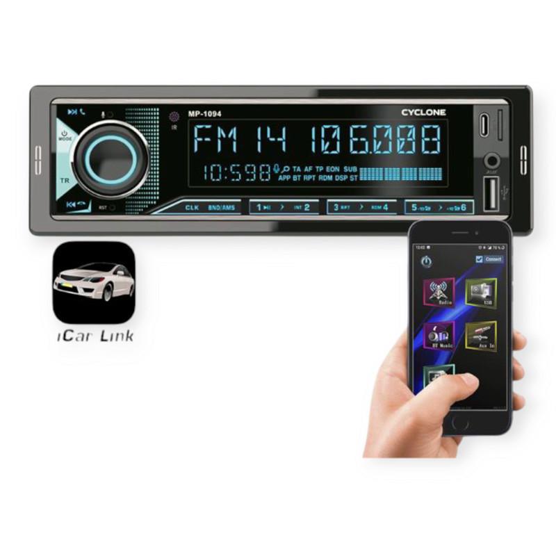 Магнитола Cyclone MP-1094 FM, USB, Type C для зарядки, microSD, AUX, MP3, WMA, BT, мультиколор, iCar Link