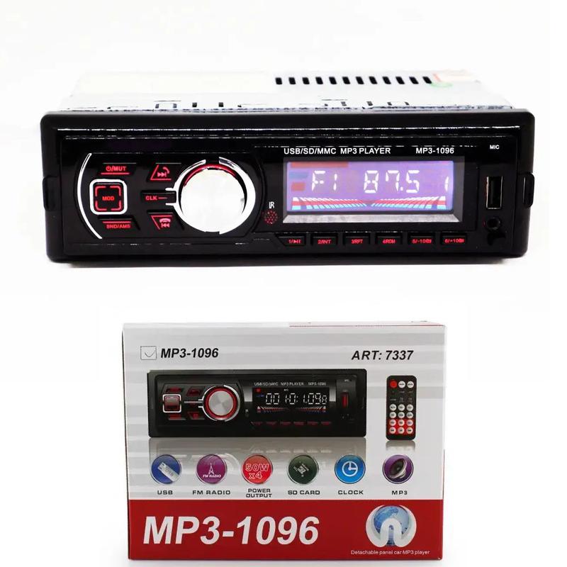Автомагнитола 1096BT – ваш билет в мир качественного звука и комфортных поездок! Преимущества: - Съемная передняя панель для защиты от кражи. - Беспроводное Bluetooth-соединение для звонков и музыки. - Яркий TFT-дисплей для удобного управления. - USB-порт для подключения внешних устройств. - Слот для SD-карт для воспроизведения любимых треков. - Компактный размер 1 DIN для легкой установки. Описание: Окунитесь в мир кристально чистого звука и современных технологий с автомагнитолой 1096BT! Эта стильная и многофункциональная магнитола станет вашим надежным спутником в каждой поездке. Наслаждайтесь беспроводным Bluetooth-соединением, позволяющим слушать любимую музыку со смартфона и отвечать на звонки в режиме hands-free. Съемная передняя панель обеспечивает защиту от кражи, а яркий TFT-дисплей делает управление простым и интуитивно понятным. Автомагнитола 1096BT – это не просто устройство, это ваш личный центр развлечений в дороге. Подключайте USB-накопители и SD-карты, чтобы наслаждаться любимой музыкой в отличном качестве. Четыре мощных канала обеспечат насыщенное и объемное звучание. Удобный пульт дистанционного управления позволит вам легко переключать треки и регулировать громкость, не отвлекаясь от вождения. Оцените идеальное сочетание стиля, функциональности и безопасности с автомагнитолой 1096BT! Превратите каждую поездку в удовольствие! Характеристики: - Тип: Mp3 - Типоразмер: 1 DIN - Тип экрана: TFT - Передняя панель: Съемная передняя панель - Мощность: 50 Вт - Наличие Bluetooth: Да - USB-интерфейс: Да - Порт для SD-карты: Да - Количество каналов: 4 - Пульт дистанционного управления: Да Комплектация: - Автомагнитола 1096BT; - Съемная передняя панель; - Монтажная шахта провода для подключения; - Пульт Дистанционного Управления; - Инструкция на английском языке; - Упаковка.