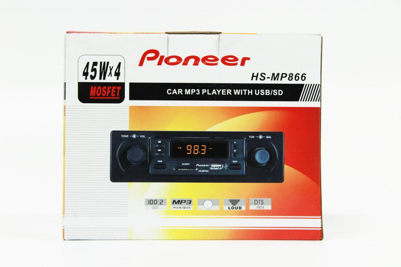 Автомагнитола Pioneer HS MP-866 Описание: Pioneer HS MP-866 — это компактная автомагнитола с поддержкой MP3 и WMA форматов. Она оснащена FM-тюнером с диапазоном частот от 87,5 до 108 МГц, а также USB и SD разъемами для подключения внешних носителей. Монохромный LED дисплей с подсветкой обеспечивает четкую информацию о текущем треке или радиостанции. Управление осуществляется с помощью многофункционального пульта. Преимущества: - Простота управления. - Поддержка MP3 и WMA. - Наличие USB и SD разъемов. Характеристики: - Мощность: 4х45 Вт. - Форматы: MP3, WMA. - Частотный диапазон: 87,5 – 108 МГц. - Пульт ДУ в комплекте. Комплектация: - Магнитола. - Пульт ДУ. - Инструкция пользователя