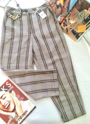 Брюки в клетку с высокой талией, слоучи, house