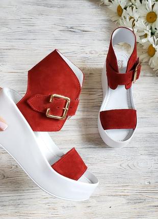 Mante! красиві жіночі замшеві шкіра червоні босоніжки, туфлі каблук 10 см весна літо осінь 39 розм