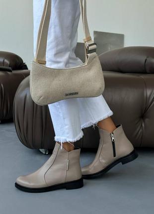 Женские кожаные ботинки ботинки челси из натуральной кожи 👌 бежевые демисезонные/зимние/осенние