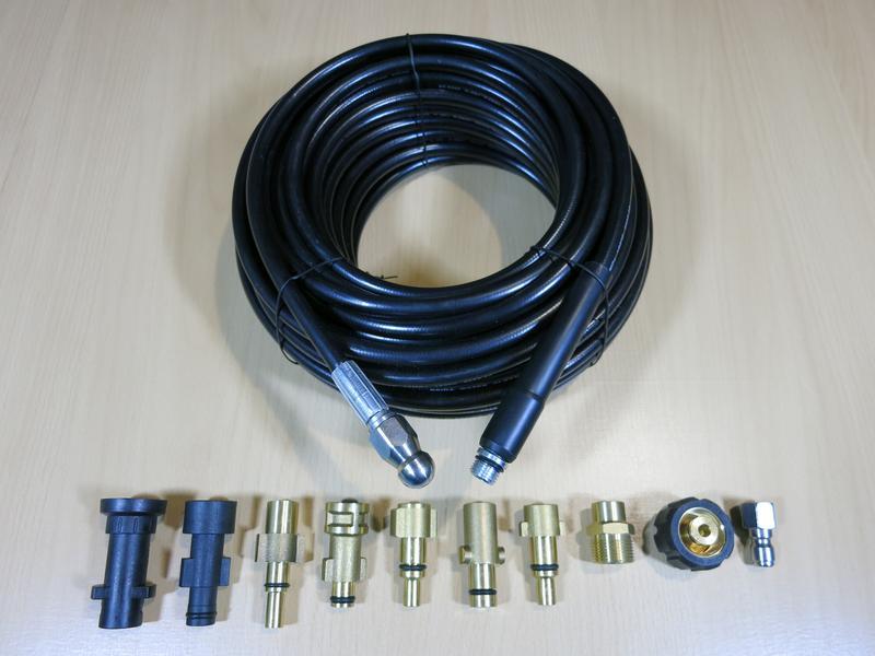 К вашему вниманию 20-метровые шланги для промывки канализационных труб для моек высокого давления. - В комплект входит : Шланг 20м + одна Форсунка (1*3) + один Переходник под вашу мойку - Форсунка на резьбе 1/4 - 1 отверстие вперед 3 назад. Также можно доукомплектовать другой форсункой с Пружинкой, 1*6, Ротационной как на последнем фото. - Переходники есть под любого производителя моек высокого давления: Karcher K2 K3 K4 K5 K6 K7 и HD,HDS серии. Lavor, Stihl, Nilfisk, M22, Ferrex, Parkside, Machtz, Sterwins, Spear Jackson, Hitachi, Workzone, Elitech, Champion, Sigma, Bosch, Makita, Black&Decker, Compass, Intertool, Vortex, Yili, Grunhelm, Limex, Sturm, Cleaner, Dnipro-M, Daewoo, Miol, Fortex, Katar, Interskol, Oleo-Mac, Michelin, Greenworks, Portland, Vax, Patriot, KW, Einhell, Kranzle, Nilfisk, Tekhmann, Tatra Garden, Huter, Anlu, быстросъем 1/4 и др.
