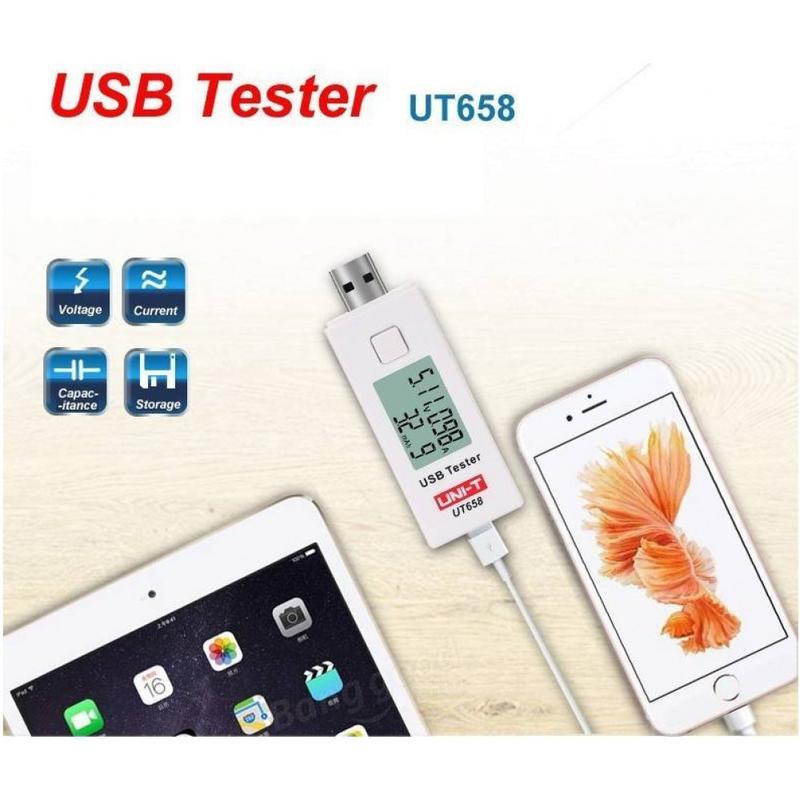 Вид приладу: Тестери Кілька примірників у наявності USB-тестер UNI-T UT658 USB тестер призначений для вимірювання реальної ємності батареї у вашому телефоні, планшеті, повербанку та в інших пристроях, а також тестування кабелів і зарядних пристроїв. Вимірює напругу, силу струму, реальну ємність акумулятора. Чудово підійде для перевірки працездатності USB-портів, перевірки якості кабелів, зарядних пристроїв тощо. USB тестер третього покоління, вдосконалений: Технічні характеристики: Input DCV: 3.0 V ~ 9.0 V Input DCA: 0.0A ~ 3.0 A Похибка напруги: 3 ~ 9 V: ± 1% Похибка сили струму : 20 ~ 4000 mA: ± 1% Максимально вимірюваний об'єм: 0 - 99999 mAh Кількість вимірювань, що зберігаються: 9 Розміри: 84*29*12 mm USB тестер струму, напруги, споживаної енергії. Як ви знаєте, кожен мобільний ґаджет має заряджатися певним струмом — на його батарею мають впливати певну кількість вольтів і ампер для того, щоб батарея заряджалася й заряджалася правильно. Проблема в тому, що якщо кількість вольтів і ампер сильно відрізняється від рекомендованого (наприклад, ваше заряджання видає занадто багато вольтів/амперів або занадто мало), це призводить до того, що батарея вашого недешевого ґаджета зношується набагато швидше. І водночас ви навіть не замислюєтеся про це! Дуже неприємно! Якби ви знали, що ґаджет псується на ваших очах, то могли б щось зробити, наприклад, замінити мережевий адаптер або кабель. На жаль, донедавна провести відповідні тести можна було тільки в електромайстернях. Ну, або ви маєте мати хоча б мінімально необхідні знання в електроніці. У наші дні ця проблема, нарешті, вже в минулому. Зараз є дуже прості пристрої, за допомогою яких зробити потрібні виміри може навіть першокласник. Без сумніву, найкраще за простотою, функціоналом і точності вимірювання Щоб зрозуміти принцип його дії, порівнянно цей прилад (розміром зі сірниковий коробок), з водяним (газовим) лічильником. Ви заряджаєте свої ґаджети, як і раніше, але між заряджанням і зарядним кабелем ставите USB тестер струму, напруги, споживаної енергії та все! Ємність батарей вимірюється в mAh (міліАмпер/годинник) і всі mAh, які проходять через цей тестер, підраховуються. Отже, у будь-який момент ви зможете побачити, скільки mAh "перетікання" в батарею вашого ґаджета. Після закінчення заряду ви знатимете, який об'єм цієї батареї. Струм може подаватися як через вбудований кабель USB, так і від будь-якої зарядки з виходом microUSB, що дає вам змогу перевірити та її теж. Також тестер працює як амперметр і вольтметр. Завдяки цьому ви бачите, чи немає зайвої напруги (вольти) або сили струму (ампери). Якщо є — шукайте інший мережевий адаптер (перехідник 220V на USB). Якщо ви не розбираєтеся, які нормальні показники, а які підвищені — вам абсолютно ні про що переживати! USB тестер — розумний пристрій. У разі невідповідності допустимих показників LED дисплей тестера починає блимати, звертаючи в такий спосіб на себе увагу. Водночас у лівій частині екрана ви побачите стрілочку вгору або вниз. Вгору — занадто велика напруга або сила струму надходить у ваш смартфон або планшет. Вниз — занадто мале. І те, й інше — це погано для батареї та потрібно міняти мережевий адаптер.