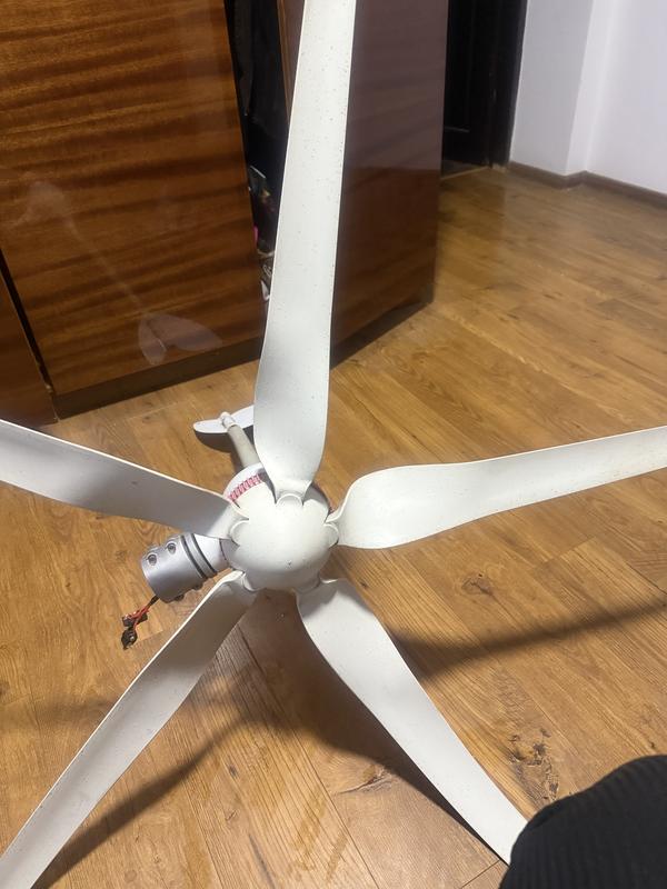 Вітрогенератор із 5 лопатями 500 Вт/12В Цей вітрогенератор складається з високоякісного алюмінієвого корпусу, хвостовика з неіржавкої сталі та нейлонової лопаті. У турбіні використовується трифазний магнітний двигун, зовнішній контролер MPPT і встановлений корпус, що забезпечує високу енергоефективність і просте встановлення. Крім того, турбіна вирізняється низькою стартовою швидкістю, високим споживанням енергії вітру, низькою вібрацією та гарним зовнішнім виглядом, що підходить для заряджання морських судом, човнів, верфей та інших побутових зарядних пристроїв. Ідеальний генератор Низька швидкість запуску Просте збирання Високоякісний матеріал Технічні характеристики Номінальна потужність: 500 Вт Максимальна потужність: 500 Вт Номінальна напруга: 12 В змінного струму Номінальний струм: 29А Діаметр обода: 54 мм/2 дюйма Діаметр ротора: 1,2 м/47 дюймів Вага нетто: 9,5 кг/21 фунт Кількість лез: 5 Матеріал леза: нейлонове волокно. Швидкість вітру на старті: 2,0 м/с. Номінальна швидкість вітру: 13 м/с Швидкість вітру для виживання: 50 м/с. Номінальна швидкість: 900 об/хв. Робоча температура: -40~80°C Генератор: постійний магніт трифазного змінного струму. Магнітний матеріал: неодим залізо-бор. Система керування: електромагнітне/пригнічення Режим регулювання: автоматичне регулювання Матеріал кабіни: литий під тиском алюміній із пофарбованим покриттям. Матеріал хвостовика: неіржавка сталь із пофарбованим покриттям. Стояв у нас рік, привезений з Польщі, причина продажі: поставили сонячні панелі.