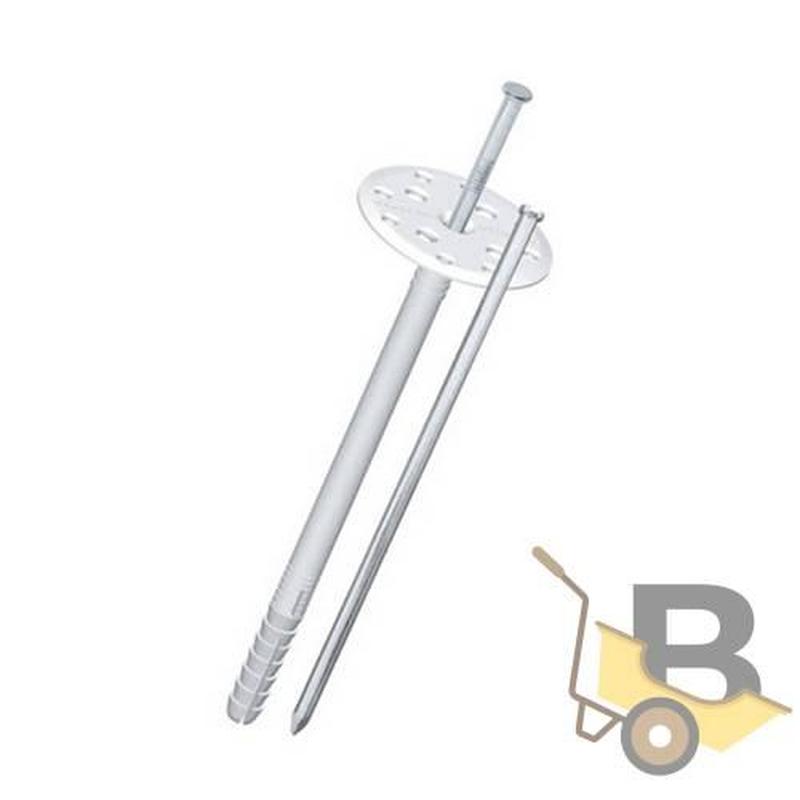 Дюбель фасадний для утеплення 10х200 з металевим цвяхом, призначений для кріплення теплоізоляційних матеріалів (наприклад, пінополістиролу, пінопласту, мінеральної вати) до внутрішніх та зовнішніх поверхонь будівель. Широкий плоский капелюшок дюбеля забезпечує надійне кріплення мінеральної вати та інших теплоізоляційних матеріалів до поверхні.