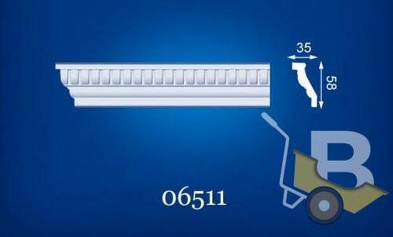 Стельовий плінтус СІМ'Я 06511 Матеріал: пінопласт. Довжина: 2 м. Розміри: 35х58 мм