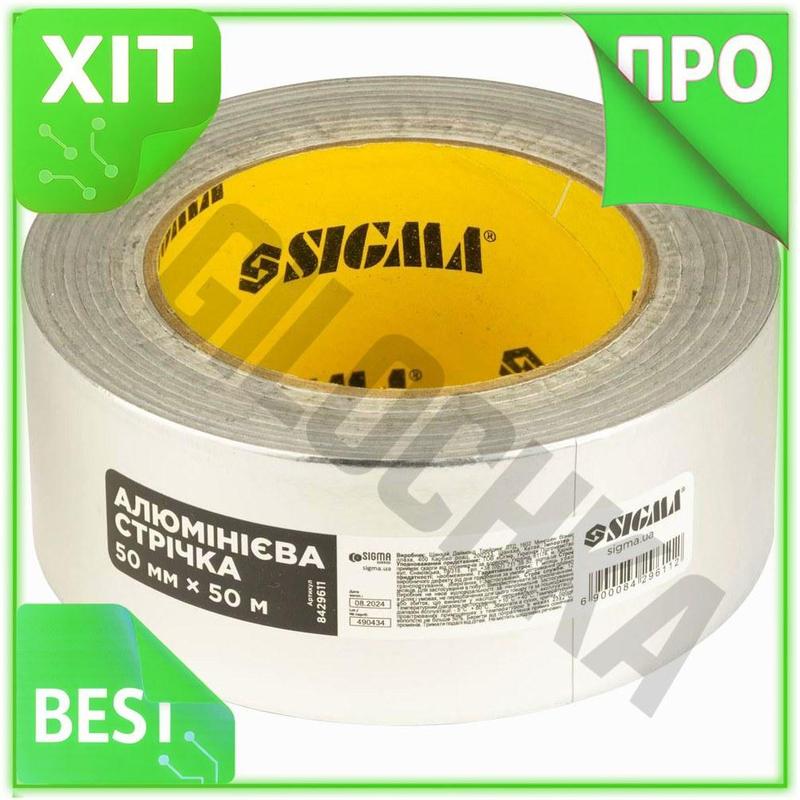 Ve алюминиевая лента 50мм 50м new version sigma клейкая для герметизации швов и труб утепл...