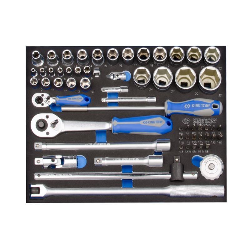 Виробник: King Tony Вид комплектуючих: Набори Кілька примірників у наявності Набір торцевих головок 1/2" і 1/4" з тріскачкою King Tony (9-7560MRV01) — це комплект інструменту для слюсарних операцій. Використовується для роботи з елементами кріплення. Орієнтований набір на автосервіс і виробництво. Постачається в ложементі EVA 375х280 мм, для ящиків інструментальних тумб і верстатів (579х380 мм). Вигідно купити набір торцевих головок із тріскачкою Кінг Тоні Особливість комплекту в облилії слюсарної оснастки. Набір містить такий інструмент: · Головки торцеві метричні (1/4": М4-14, 1/2": М10-32). · Біти SL, Philips, PZ, TORX. · Тріскачки з прапорцевим перемикачем 1/2" і 1/4". · Воротки (з карданом, плавальною головкою, у формі викрутки). · Подовжувачі, перехідник, кардани, тримач біт із тріскачкою. Матеріал виготовлення інструменту та насадок — хромо-ванадієва сталь. Ручки тріскачок прогумовані. Інструмент призначений для професійного використання в агресивних умовах станції ТО або цеху. Інструмент можна використовувати окремо (головки з гайковертами, воротки з іншими комплектами змінних насадок). Технічні характеристики набору King Tony (9-7560MRV01): · Кількість предметів у наборі — 60 одиниць. · Вага інструмента з ложементом — 6.24 кг. Виробник: King Tony Країна виробник: Тайвань Гарантійний термін: 6 міс Кількість в наборі інструментів: 60 Набір ручного інструменту: набір автомобільного інструменту Стан: Новий Тип: Набір ручного інструменту Тип упаковки: Ложемент