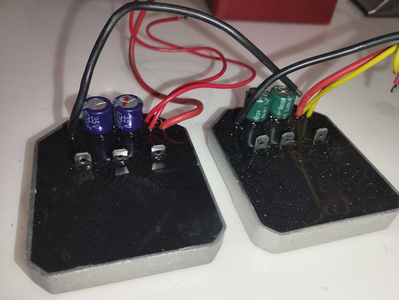Характеристики: Рабочий диапазон 18-24в размеры 6.2*5.2см*1см. Имеет алюминиевый корпус Два конденсатора на 35v 470mf Мощность 50-60а 300w, 12 транзисторов