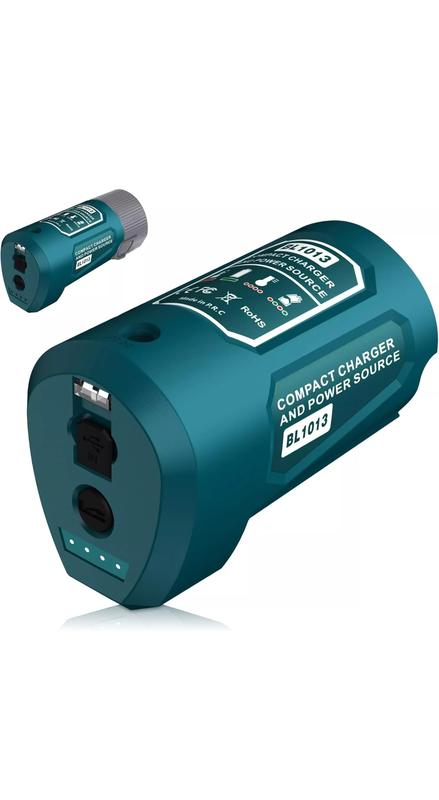 USB Power Source Power Adapter Charger for Makita 10.8V 12V Li-ion Battery TypeC Универсальный адаптер Power Source BL1013 для литий-ионных аккумуляторов Makita 10.8V и 12V (серии CXT). Превратите ваш аккумулятор в мощный портативный Power Bank для зарядки любых USB-устройств. Идеально подходит для зарядки смартфонов, планшетов и других гаджетов на строительной площадке, в походе или в условиях отсутствия электричества. Оснащен одним или двумя USB-выходами (указать точное количество) для одновременной зарядки двух устройств. Имеет индикацию уровня заряда батареи. Корпус выполнен из прочного пластика. Незаменимый аксессуар для владельцев аккумуляторного инструмента Makita. является многофункциональным адаптером для литий-ионных аккумуляторов 10.8V/12V-max, которые используются в электроинструментах (например, Makita и аналоги). 🎯 Для чего оно нужно? По своей сути, этот аксессуар выполняет две ключевые функции, превращая специализированный аккумулятор для инструмента в универсальное устройство: Превращение в Пауэрбанк (Источник питания): Это главная и самая полезная функция. Вставив в него аккумулятор от своего шуруповерта, вы получаете полноценный мобильный источник питания (пауэрбанк) с USB-выходом. Назначение: Заряжать ваш смартфон, планшет, Bluetooth-наушники, фонарик или любое другое устройство с USB-зарядкой вдали от стационарной розетки. Это очень удобно на стройке, в походе, при отключении света или просто в дороге. Зарядное устройство (В зависимости от типа): В некоторых версиях такие адаптеры могут сами служить компактным зарядным устройством для аккумулятора инструмента (т.е. иметь вход для подключения к сети). Однако чаще всего этот конкретный форм-фактор (с USB на торце) предназначен именно для функции пауэрбанка.