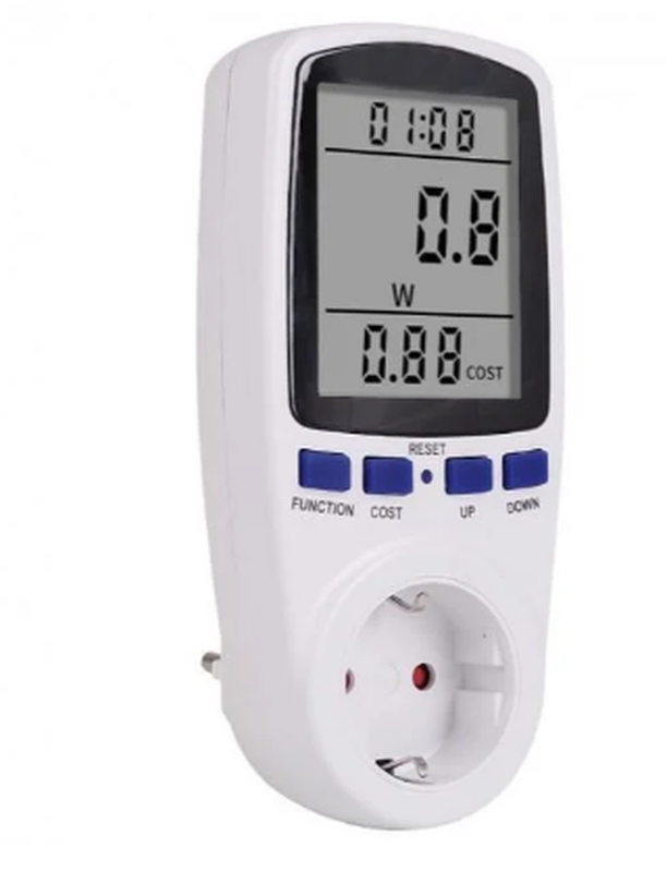 Енергометр ватметр амперметр вольтметр Энергометр ватметр амперметр вольтметр – это прибор, который предназначен для измерения и контроля потребления электроэнергии. Розетка энергометр позволит получить информацию о расходе электроэнергии бытового прибора, напряжении, тока и мощности.