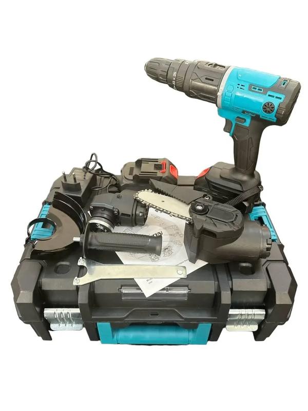Набор инструментов 3в1 с сменными насадками на аккумуляторах шуруповерт | болгарка | пила