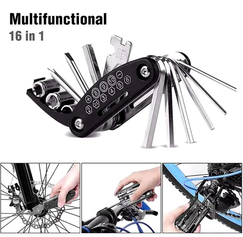 Многофункциональный инструмент 16 в 1 для ремонта велосипеда 90 на 25 на 45 мм чорний
