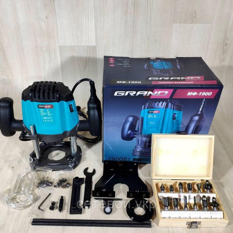 Станок фрезерный по дереву для обрезки кромки + набор фрез 12шт 1900w grand (чехия), nst