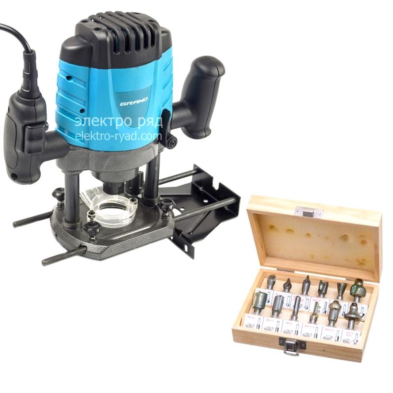 Ручной мини фрезер по дереву + набор фрез 12шт 1900w grand (чехия), ручные фрезерные станк...
