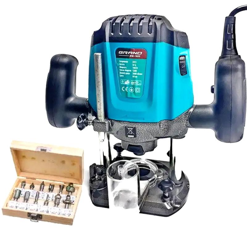 Столярный кромочный фрезер по дереву + набор фрез 12шт 1900w grand (чехия), nst