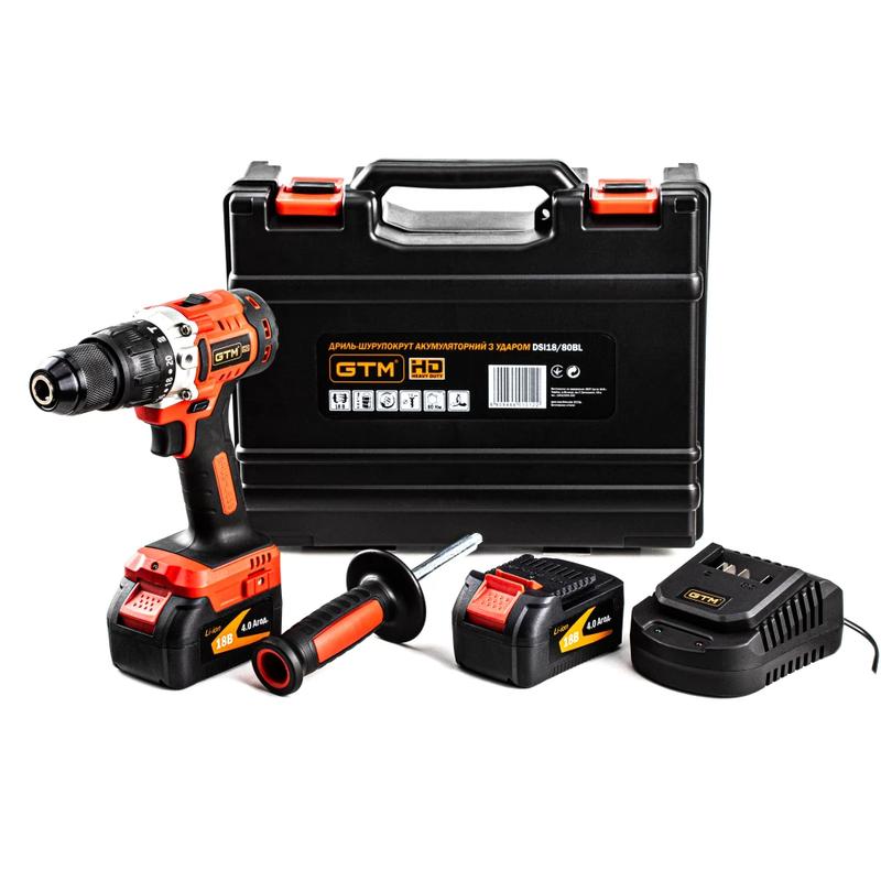 Мощный аккумуляторный ударный шуруповерт gtm dsi18/80bl : с акб 2шт-18v 4ah, 1800 об/мин,...