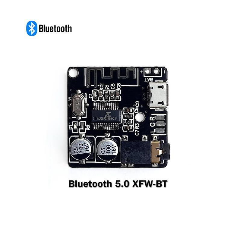 Модуль Bluetooth 5.0 XFW-BT (black) Характеристики: • Название бренда: WAVGAT • Версия: Bluetooth 5.0 • Источник питания: 3,7-5В / micro USB • Отношение сигнал/шум: (SNR): 90dB • Коэффициент гармонических искажений + шум (THD+N): -70dB • Уровень наводок: -86db • Динамический диапазон (DNR): 91dB • Поддержка: профиль A2DP/AVCTP/AVDTP/HFP • Стерео выход: AUX 3.5мм/выход на наушники • Дальность: 15 м • Размеры платы: 30 х 30 мм • Вес: 4,6 гр. Примечание: • Мicro USB порт и контактные площадки "BAT" подключены в параллель • Оповещение о статусе подключения Bluetooth: звуковой сигнал Chip: AS20BP03455-25A4 (black) AS20BP00974-25A4 (black)