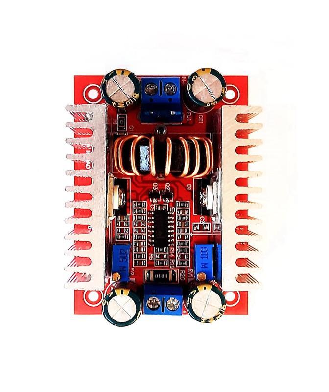 Повышающий преобразователь постоянного тока 400 Вт/15 А, от 8,5-50 В до 10-60 В Характеристики: • Название бренда: ACELEX • Входное напряжение: 8,8-50 В • Выходное напряжение: 10-60 В регулируемое • Максимальный входной ток: 15А • Максимальный выходной ток: 12 А (более 7А требует охлаждения) • Выходной ток (регулируемый): 0,2-12A (зависит от нагрузки и вых. напряж.) • Эффективность преобразования: до 96% • Частота преобразования: 150 кГц • Рабочая температура: -40...85 • Ток покоя: 10 мА • Защита от Короткого замыкания: предохранитель 15А • Защита от обратной полярности на входе: нет • Размеры: 67 x 48 x 28 мм Потенциометр RV1 "CV-ADJ" регулировка напряжения Потенциометр RV2 "CC-ADJ"регулировка тока Компоненты: Диод: MBR20100CT Микросхема: TL494 Транзистор: D882 NPN 3A/30В; NCE8920B N-Channel 90А/82В По факту напряжение на выходе можно повысить до 66В, не рекомендуется повышать более 60В, т.к. выходные конденсаторы напряжением до 63В.