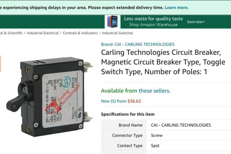Тип обладнання: Термозапобіжники Кілька примірників у наявності Автоматичний, високоякісний вимикач постійного струму від знаменитої компанії Carlingswitch США. Призначений для захисту мереж постійного струму - захист АКБ, потужних блоків живлення, зарядних пристроїв, сонячних панелей електродвигунів і т.д. від перевантажень, проводки та споживачів від перегорання та КЗ, а також як вимикач для потужного навантаження постійного струму. Номінальний струм до 30А, відсікання 37.5А, напругою до 80 В. Срібні контакти, магнітна дугогасна камера. Продукція компанії Carling Technologies у всьому світі вважається однією з найкращих у своїй категорії. Бренд поставляє ринку великий модельний ряд перемикачів і вимикачів, що використовуються в авіабудуванні, автомобілебудуванні, суднобудуванні, приладобудуванні та ін. Неможливо уявити собі сучасну техніку без безлічі вузлів і механізмів.