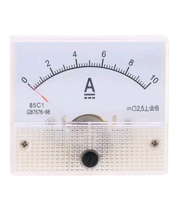 Вид приладу: Амперметри Кілька примірників у наявності Є РІЗНІ ВАРІАНТИ O99O95O4IO Амперметр постійного струму панельний стрілочний 10A DC серія 85C1 Монтуємий на панель аналоговий (стрілочний) вимірювач постійного струму на 10 Ампер. Лінійна шкала. З вбудованим шунтом ! Опис товару Діапазон вимірювання -до 10 A. Клас точності 2,5 Вбудований шунт Габарити вимірювача 63 x 55 x 55 мм Глибина (з урахуванням виступу механізму на задній стороні) 50 мм Монтажний отвір діаметром 49 мм Спосіб монтажу - 2 гвинта ззаду , М2.5, міжцентрова відстань 51,3 мм Вага 80 г