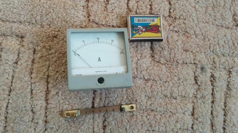 Амперметр постоянного тока М42100 0 – 20А с отдельным шуттом ( настоящий манганин+ латунь) для мощного зарядного или блока питания. Размеры 80х80 мм.
